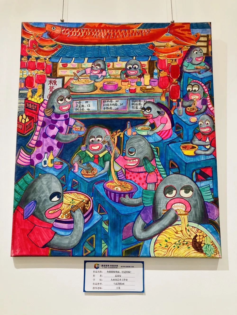 浓郁的巴渝文化特色是本次作品展给人的最深印象。比如开篇提到的那些神奇的重庆“动物”,它们全部来自重庆方言俚语,这些麻辣鲜香的巴渝文化的典型符号,与孩子的童真有趣结合之后,呈现的画面令人印象深刻。