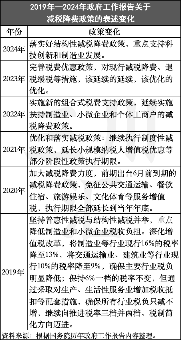 值得关注的是,在今年的政府工作报告里面,对于减税降费的着墨非常之少,仅仅提到一句话——落实好结构性减税降费政策,重点支持科技创新和制造业发展,没有再提大规模的新增减税降费。由此可见,在过去几年间,国家通过大规模减税降费,不仅降低了市场主体的运营成本,对供给侧结构性改革和产业结构优化也产生了一定的推动作用。